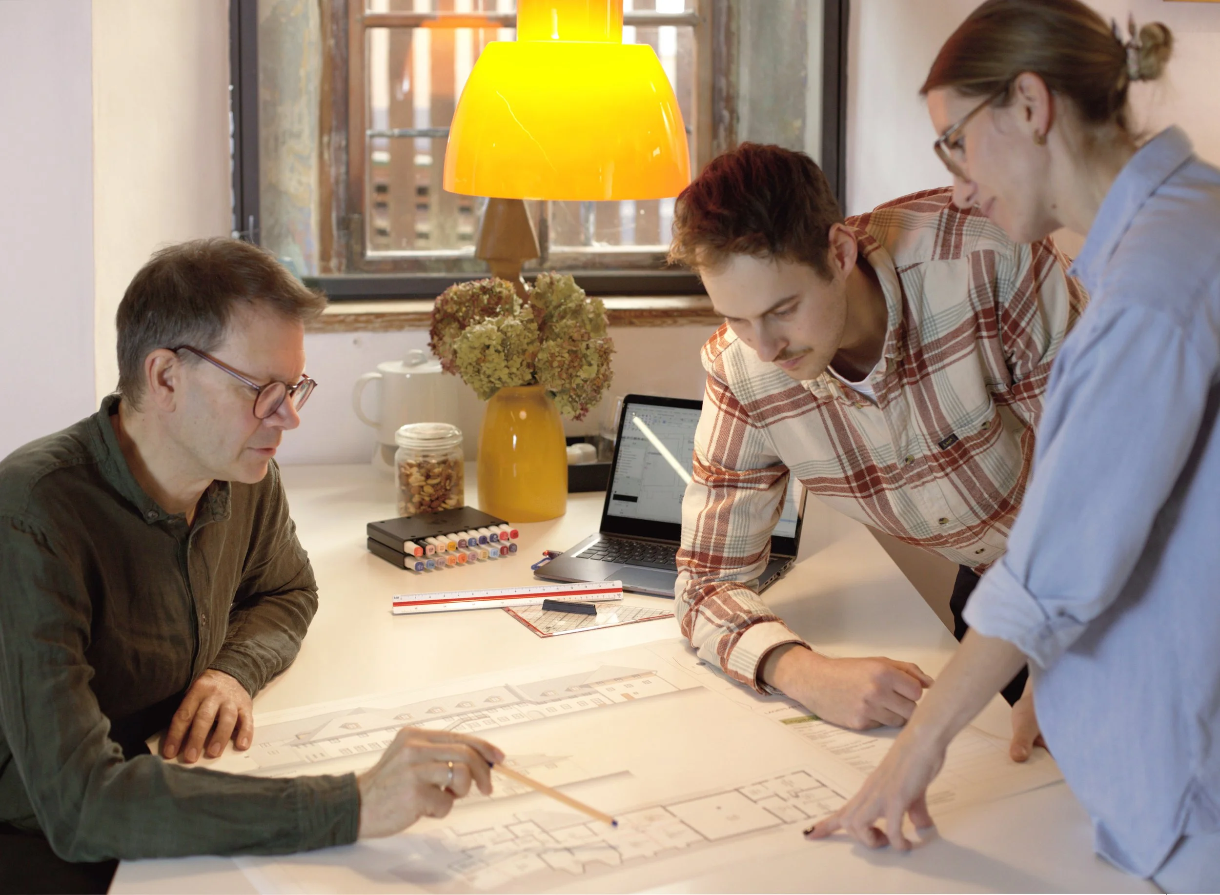 Architektur ist Teamarbeit - nicht nur auf der Baustelle. Auch unser Büroteam nutzt die Kompetenzen verschiedener Ausbildungsrichtungen. Unser Wissen geben wir an unsere Auszubildenen weiter. Gemeinsam gestalten wir Projekte, die Vision und Handwerk harmonisch verbinden.
