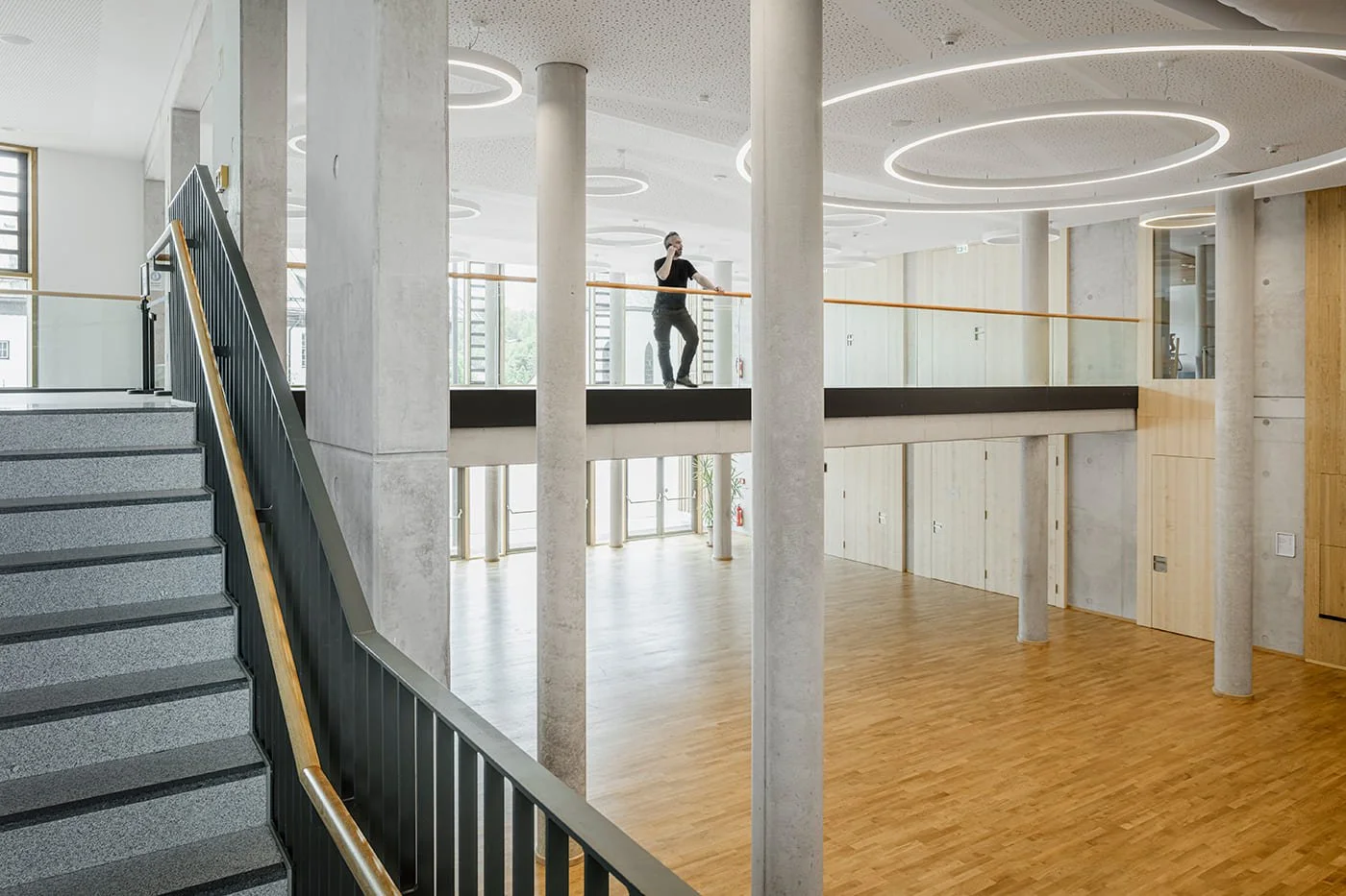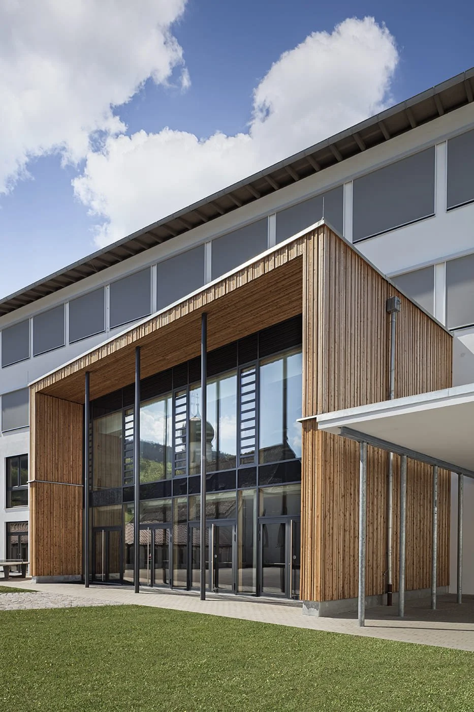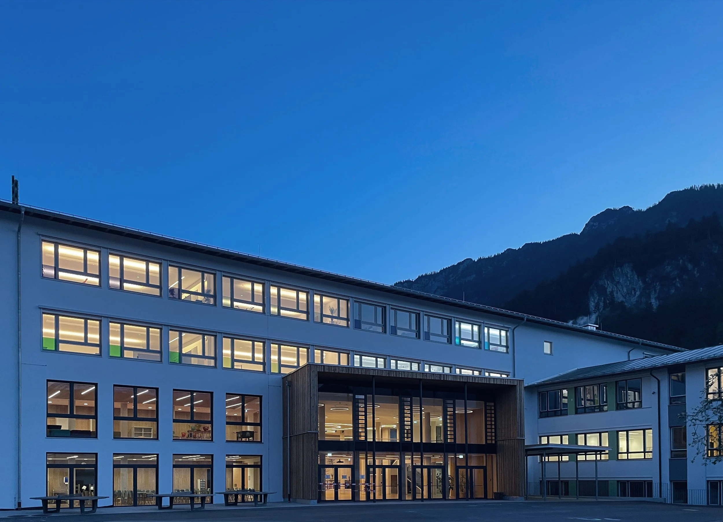 Anlässlich der Zusammenlegung der beiden Mittelschulen von Berchtesgaden und Bischofswiesen musste das Schulgebäude in Bischofswiesen erweitert werden. Umgesetzt wurde ein Neubau, der an das bestehende Schulgebäude anschließt und unter anderem 16 Klassenräume, eine Aula sowie eine Mensa mit Küche beinhaltet. Besondere Herausforderungen waren die Coronapandemie während der Planung und der Ukrainekrieg zeitgleich mit dem Baubeginn. Für die Gebäudetechnik mussten während der gesamten Bauzeit Provisorien geschaffen werden, um im laufenden Betrieb Heizung, Strom- und Internetversorgung aufrecht zu erhalten.